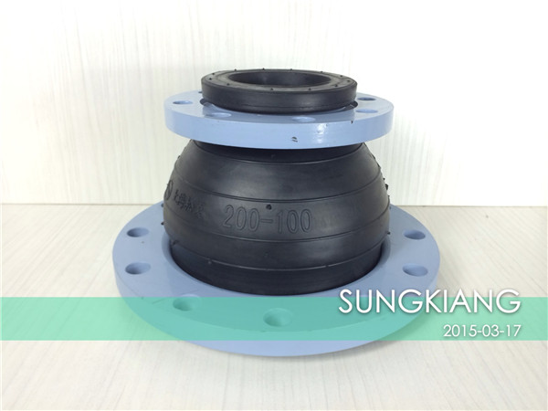 同心異徑橡膠接頭又稱作異徑管道減振器、膨脹節、避震喉、軟接頭,是金屬管道的柔性聯接器,由內膠層、錦綸簾子布增強、外膠層復合的橡膠球體和淞套金屬法蘭組成。現引進*外先進生產工藝,制作過程中內層受到高壓力,錦綸簾子布和膠層得到更好的結合,比普通型可曲撓橡膠接頭的工作壓力更高,質量更好。它是*種高彈性、高氣密性、耐介質性和耐氣候性的管道接頭。
