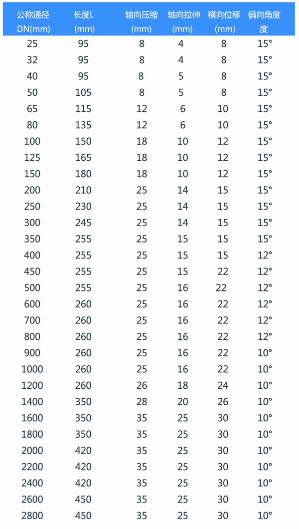 安裝時可產生橫向、軸向、角向位移,不受管道不通心,法蘭不平行的限制。
