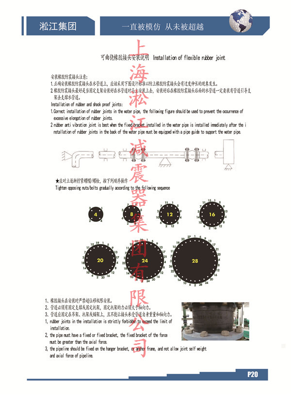 相信只要是橡膠接頭正規(guī)廠家說明書上都有關(guān)于安裝的相關(guān)頁面,百度上找不到完整的只是由于比較懶散,這里淞江集團(tuán)為大家?guī)黻P(guān)于安裝防震可曲繞橡膠接頭的安裝小細(xì)節(jié)文章說明以及圖文案例。