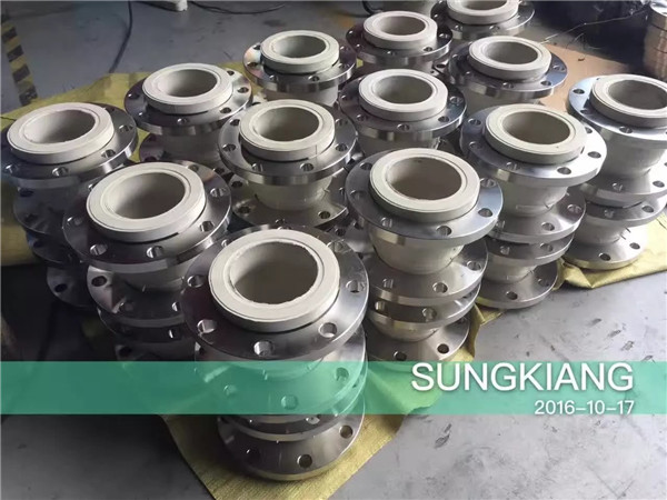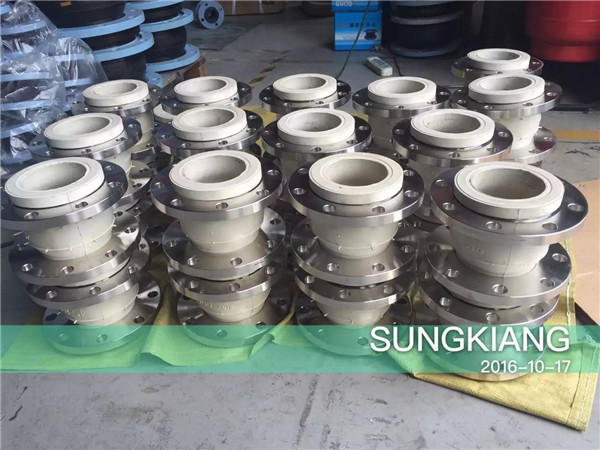 白色硅橡膠軟接頭用于金屬管道之間起撓性連接作用的中空橡膠制品。可曲撓單球體橡膠軟接頭又叫做橡膠管軟接頭,柔性橡膠接頭,橡膠軟接頭,可曲繞橡膠接頭,高壓橡膠接頭,橡膠減震器,補償器等。按連接方式分淞套法蘭式、固定法蘭式和螺紋式3種;按結構可分為單球體、雙球體、異徑體、彎球體及風壓盤管等5種。由內外層膠、簾布層和鋼絲圈組成管狀橡膠件,經硫化成型后再與金屬法蘭或平行接頭淞套組合而成。此產品可降低振動及噪聲,并可對因溫度變化引起的熱脹冷縮起補償作用,廣泛應用于各種管道系統。