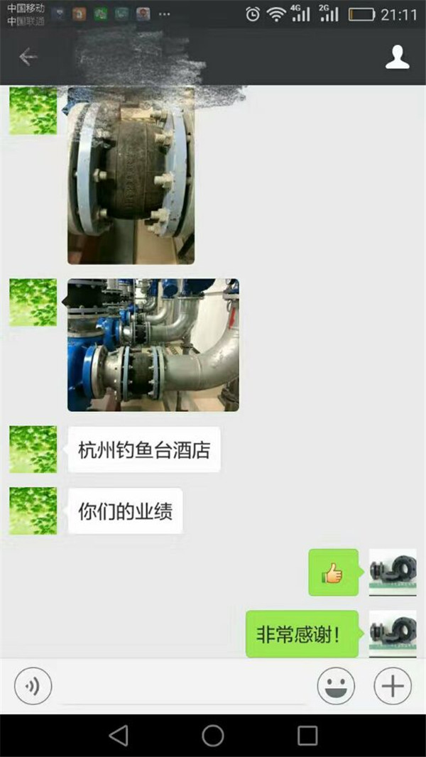 【上海淞江】杭州釣魚(yú)臺(tái)酒店安裝橡膠軟連接反饋